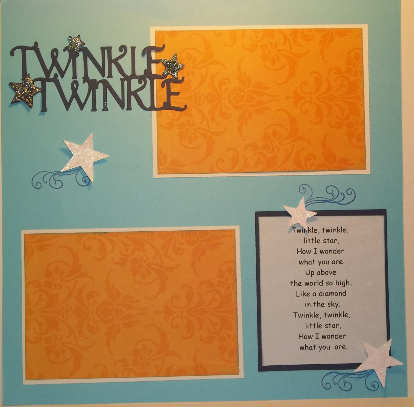 I put stickles on all of the stars so that they would shine a little. Then printed out the nursery rhyme on my computer and matted it. I also used some of my swirlly stamps to make the trails for the stars.